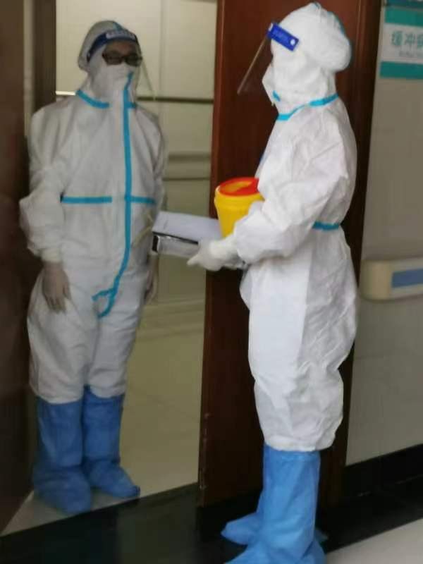 2022年11月26日上午我院产科接到120电话,告知马上转来一个密接产妇,二胎,已经破水,情况紧急,产房立刻启动应急预案,产房助产士程媛媛,作为一名共产党员,目前身处哺乳期阶段,冲锋在前,立刻在汪冬晴产长的指导下备齐分娩所需的物资设备,并立即启动二级防护,等待产妇的到来。同时吕飞医生和鲁珊霞护士在叶少华主任和代玉叶护士长的领导下立即进行二级防护,疏散走廊人员。产妇到达隔离产房后,舒医产科人立即投身到各自工作中,经过大家不懈努力产妇于13点4分顺利分娩一男婴。