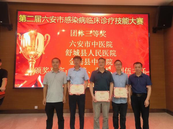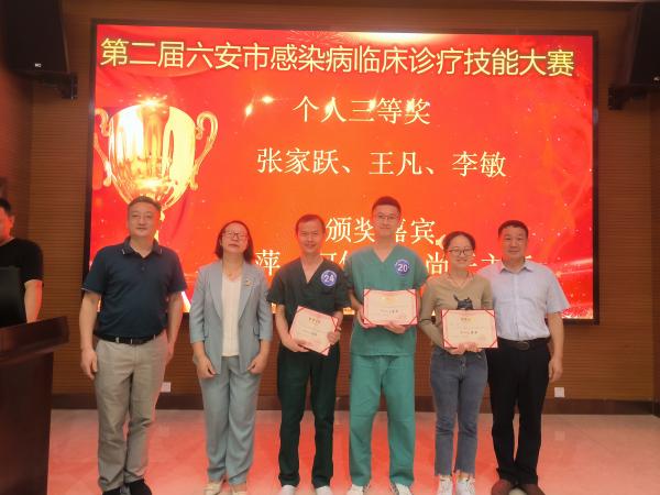 近日,由六安市感染病专业质控中心主办的市第二届感染病专业诊疗技能竞赛在六安市举行。全市有13家市县级医疗单位的医师和代表参加比赛。我院选派感染科医师王凡、宋欢欢参加。经过层层关卡,最终我院荣获市团体三等奖的好成绩,感染科王凡荣获个人三等奖的佳绩。