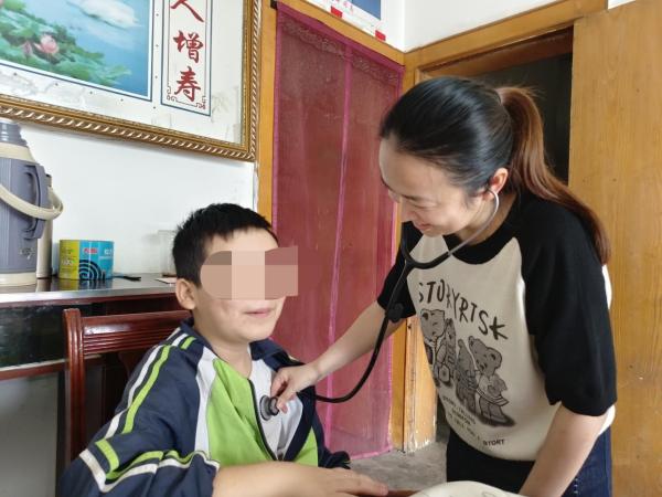 抵达童童家后,医生第一时间为他详细检查近期的身体状况,从饮食搭配到日常护理,每一个细节都耐心叮嘱。