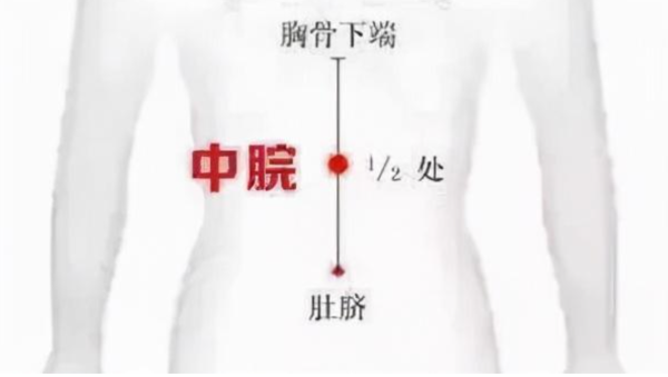 定位:腹部正中线上,胸骨下端与肚脐连线的中点。