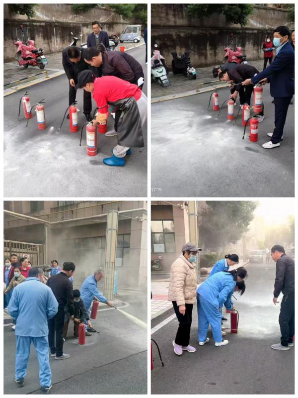会后,总务科组织消防演练,模拟扑灭初起火灾,第三方公司工作人员轮流进行演练,确保熟练掌握灭火器材的规范使用。
