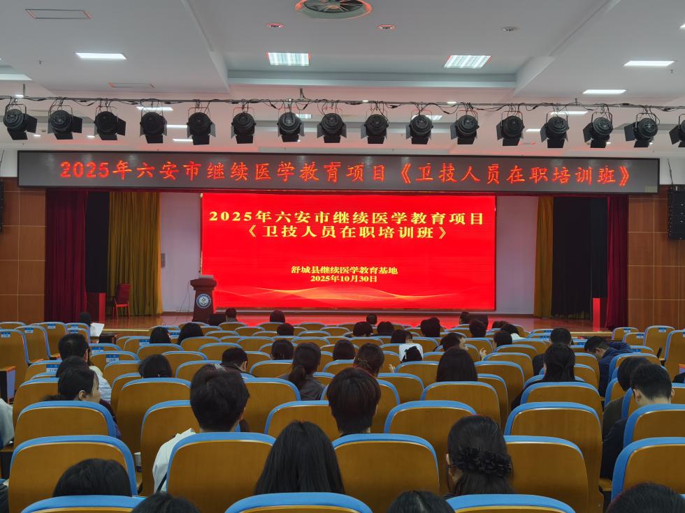 为切实提升医务人员专业技术水平,保障医疗质量与安全,经六安市卫生健康委批准,舒城县继续医学教育基地于 2025 年 10 月 30 日起分期举办六安市市级继续医学教育项目培训班。10 月 30 日上午,培训班正式开班。舒城县人民医院领导班子成员出席仪式,全县各医疗单位的卫技人员齐聚一堂,共同开启为期多期的专业提升之旅。