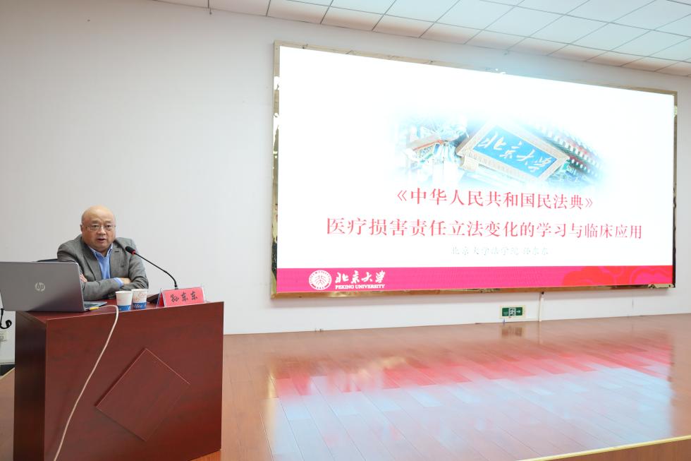 为全面提升医疗质量安全,规范医务人员医疗行为,确保医患双方合法权益、增强医务人员法律意识和风险防范能力,11月14日下午,我院特邀北京大学卫生法学研究中心主任、北京大学法学院教授孙东东来院作《中华人民共和国民法典》医疗损害责任立法变化的学习与临床应用专题讲座。医院领导班子、中层干部及非值班医护人员共同参加了此次学习。