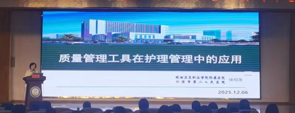 接着,六安市第二人民医院质量管理部主任徐绍莲聚焦质量管理工具在护理质量中的应用,介绍了 PDCA 循环、品管圈、柏拉图等工具,阐述质量管理工作在助力护理流程优化、问题精准剖析等方面的重要作用,为我院护理管理工作提供了实用方法与应用思路。