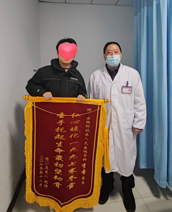 “仁心暖化一九九七寒冬雪,圣手托起生命最初坚韧骨。”2025年12月,一面红色锦旗被郑重送到舒城县人民医院骨科主任医师李圣手中。赠旗人陈先生未曾想到,他与这位医生的缘分,始于自己出生仅25天时。