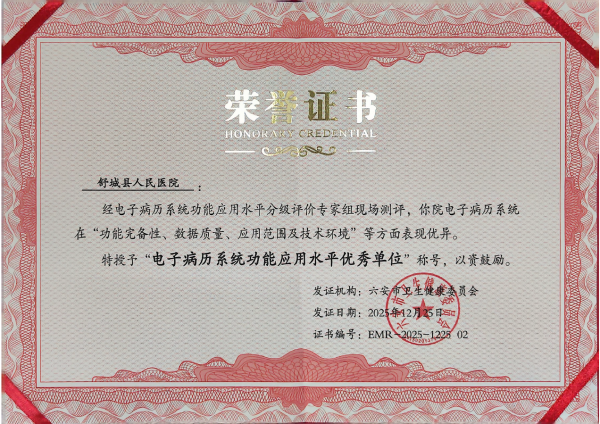 近日,舒城县人民医院在电子病历系统功能应用水平分级评价市级审核中脱颖而出,成功斩获“电子病历系统功能应用水平优秀单位”称号!