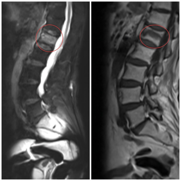 图1:术前腰椎MRI检查明确诊断L1骨折