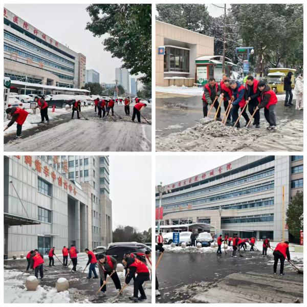 面对突如其来的降雪,院党委高度重视,第一时间启动应急预案,组织行政后勤人员、党员志愿者等力量,对医院主要出入口、急诊通道等重点区域开展集中清雪作业。大家手持铁锹,分工协作,配合默契,全力清除路面积雪和结冰。
