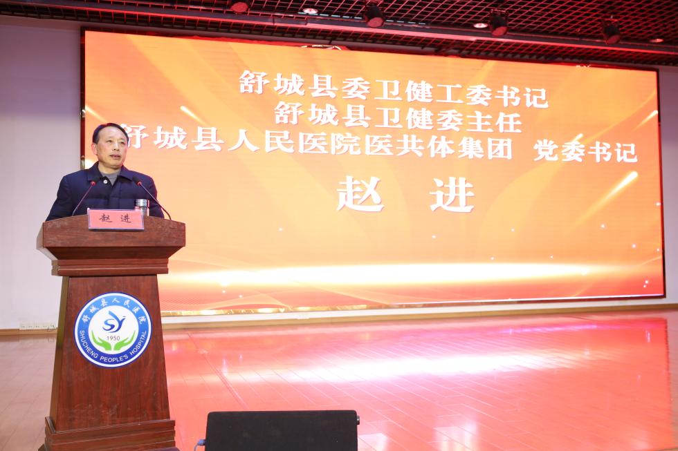 赵进书记在讲话中站在全县卫生健康事业发展全局的高度,深刻分析了当前医共体建设面临的新形势、新任务。他充分肯定了医院过去一年取得的成绩。赵进书记强调,要紧紧围绕医共体提质升级这一核心任务,以"患者满意、职工幸福、政府放心"为根本目标,以“态度好、投诉少、评价好、留下来、治得好”的要求不断优化医疗卫生服务,深化改革创新,优化资源配置,提升服务能力,奋力开创县域卫生健康事业高质量发展新局面。