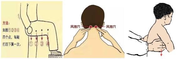 2. 点风池:双手拇指点按后颈风池穴(枕骨下凹陷处),配合深呼吸,早晚各3分钟