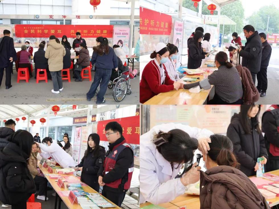 活动现场暖意融融、人头攒动。舒城县人民医院耳鼻咽喉头颈外科专家为群众进行了细致的耳部检查,耐心解答各类耳部健康问题并给出个性化诊疗建议;现场同步提供免费测血压服务,护理人员结合患者血压情况讲解心脑血管健康与听力保护的关联;舒城县卫健委、舒城县疾控中心专家积极向群众发放科普宣传单,面对面讲解安全用耳常识,手把手指导科学护耳方法,让义诊活动成为节日里守护群众听力健康的暖心纽带。
