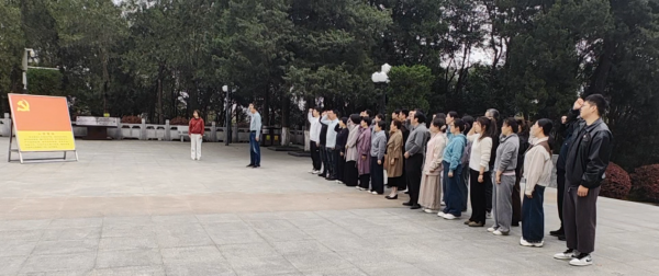 缅怀革命先烈,砥砺忠诚本色。离开大湾村后,全体党员到金寨县红军广场开展缅怀活动。在苍松翠柏环绕的广场上,革命烈士纪念塔庄严肃穆,“燎原星火”熠熠生辉。全体党员整齐列队,怀着崇敬心情向先烈敬献鲜花、鞠躬致敬,深切缅怀英勇献身的革命先辈。随后,全体党员高举右拳,重温入党誓词。铿锵誓言回荡广场,既是对入党初心的再叩问与唤醒,也是对理想信念的再锤炼与升华。一次瞻仰是精神洗礼,一次宣誓是初心重整。